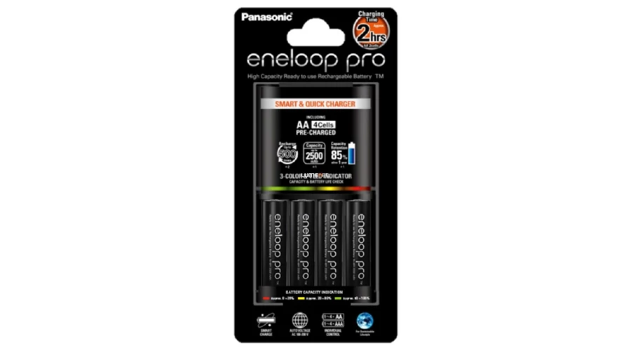 Eneloop K-KJ55HCD40E gyors akkumulátor töltő 4 db 2500mAh AA akkumulátorral