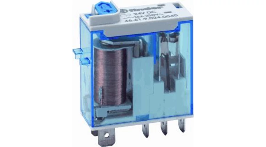 A 46-os sorozatú miniatűr ipari relé dugaszolható vagy közvetlen csatlakoztatással a Faston csatlakozókon keresztül. Kapható zárható tesztgombbal, mechanikus kijelzővel és LED-es kijelzővel.
