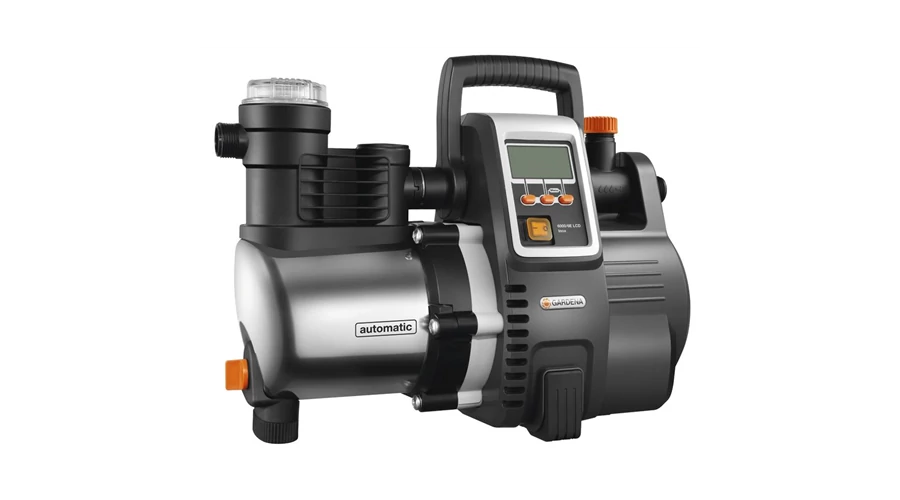 A kompakt GARDENA Premium 6000/6E LCD Inox háztartási automata szivattyú rozsdamentes nemesacél szivattyúházzal, 1300 W névleges teljesítménnyel, maximum 6000 l/h szállítási teljesítménnyel és 5,5 bar maximális nyomással mobil és fix használatra egyaránt kiválóan alkalmas, ahol csak szükség van rá.