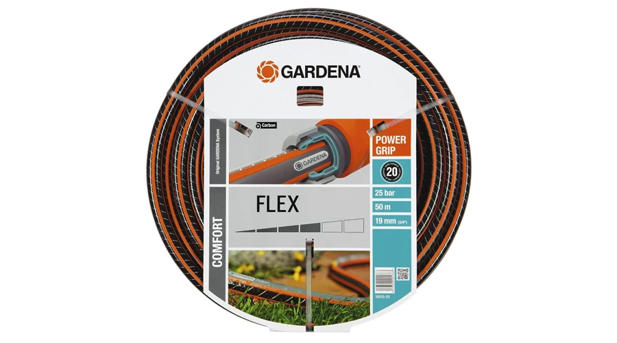 A GARDENA Comfort FLEX tömlő Power Grip bordázattal tökéletes csatlakozást biztosít a tömlő és a tömlőelem között. Az új technológiának köszönhetően egymásba illenek, mint a fogaskerekek. A Power Grip bordázat lehetővé teszi sok kerttulajdonos régi álmát; a megbízható kapcsolatot, tökéletes tartóerővel. A bordázott felület pozitív mellékhatása, hogy a tömlőt könnyebb feltekerni és jól csúszik. A spirálhálós szövetnek köszönhetően, melyben két spirálszál egymással ellentétes irányban fut, a tömlő nyomásálló és alaktartó, egyúttal rugalmas és könnyen kezelhető. Ez nyújtja a legjobb előfeltételeket az egyszerű és sokoldalú felhasználáshoz a kertben. Szükség esetén az Original GARDENA System csatlakozóelemeihez és öntöző eszközeihez kitűnően használható. Nem tartalmaz káros lágyítókat (ftalátokat) és nehézfémeket és természetesen UV ellenálló. Vastag fala különösen robusztussá és tartóssá teszi. 25 bar repesztő nyomás. 20 év szavatosság.