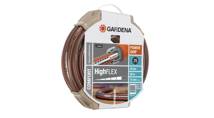A GARDENA Comfort HighFLEX tömlő Power Grip bordázattal tökéletes csatlakozást biztosít a tömlő és a tömlőelem között. Az új technológiának köszönhetően egymásba illenek, mint a fogaskerekek. A Power Grip bordázat lehetővé teszi sok kerttulajdonos régi álmát; a megbízható kapcsolatot, tökéletes tartóerővel. A bordázott felület pozitív mellékhatása, hogy a tömlőt könnyebb feltekerni és jól csúszik. A sűrű, kiváló minőségű spirálhálós szövetnek köszönhetően, melyben két spirálszál egymással ellentétes irányban fut, a tömlő nyomásálló és alaktartó, egyúttal sokkal rugalmasabb felhasználáskor, mint a Comfort FLEX tömlő. Ez a spirálok sűrűségének köszönhető, ami a tömlőt még rugalmasabbá és könnyebben kezelhetővé teszi. A tömlő nem csomózódik vagy csavarodik. Mindezek a legjobb előfeltételeket nyújtják az egyszerű és sokoldalú felhasználáshoz a kertben. Szükség esetén az Original GARDENA System csatlakozóelemeihez és öntöző eszközeihez kitűnően használható. Nem tartalmaz káros lágyítókat (ftalátokat) és nehézfémeket és természetesen UV ellenálló. Vastag fala különösen robusztussá és tartóssá teszi. 30 bar repesztő nyomás. 25 év szavatosság.
