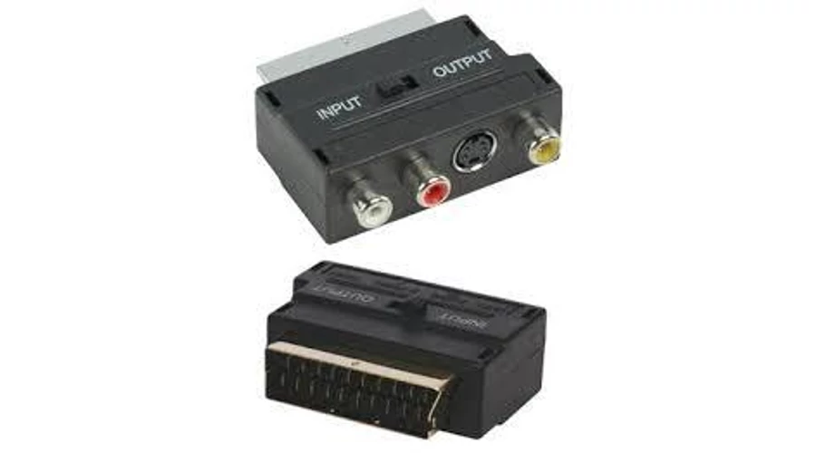 RCA/SCART adapter 3XRCA aljzat+SVHS aljzat - SCART dugó, IN/OUT tolókapcsolóval