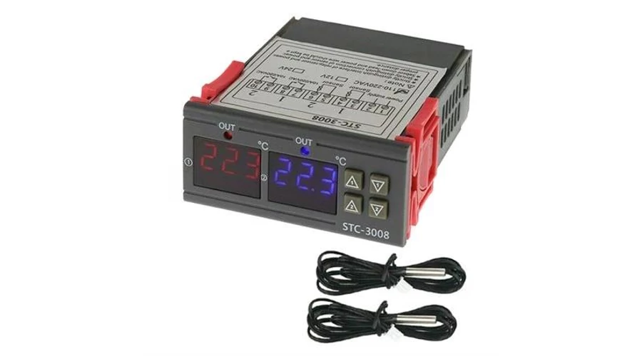 STC-3008 Digitális duál termosztát NTC szenzorokkal -55°C~120°C 110-230VAC 75x34x85mm