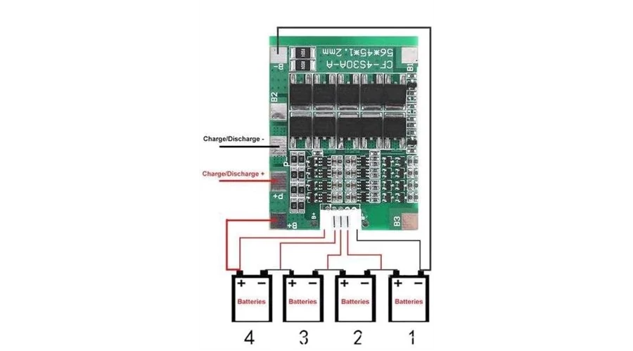 Töltésvezérlő 4db Li-Ion cellához 30A 14.4V-16.8V 50×23mm