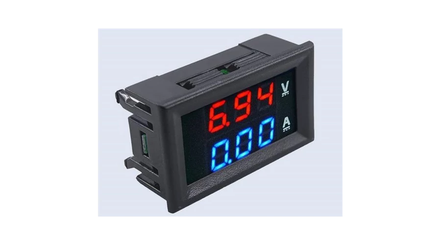 Voltméter 5-30VDC 1-15A kék számok direktmérő előlapba