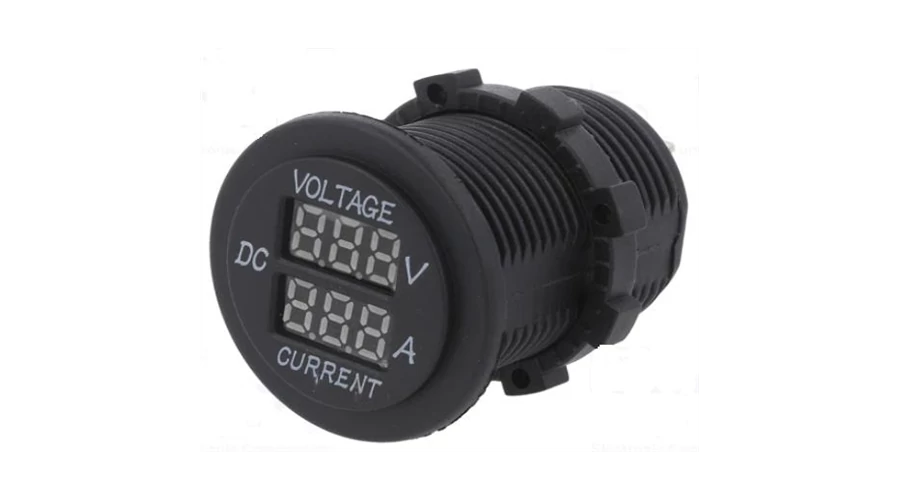Voltméter 5-30VDC 1-15A piros számok direktmérő előlapba